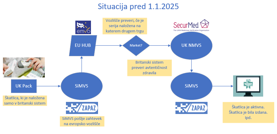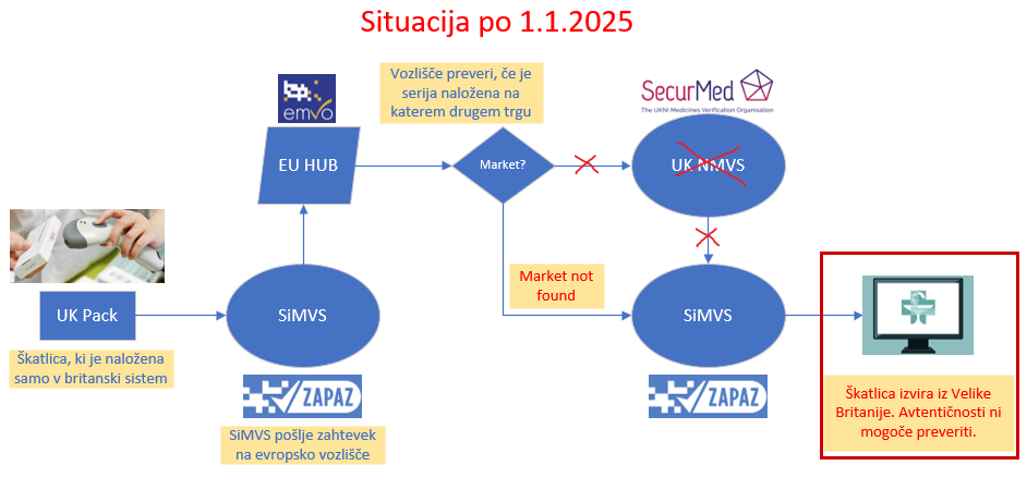 Ob izključitvi britanskega sistema lahko pride do situacije, ko bi se moralo tako zdravilo, ki je bilo prvenstveno namenjeno za trg Velike Britanije, preveriti v njihovem sistemu, vendar bo po izklopu evropsko vozlišče sporočilo napako "Market not found", SiMVS pa bo uporabniku izpisal obvestilo:
